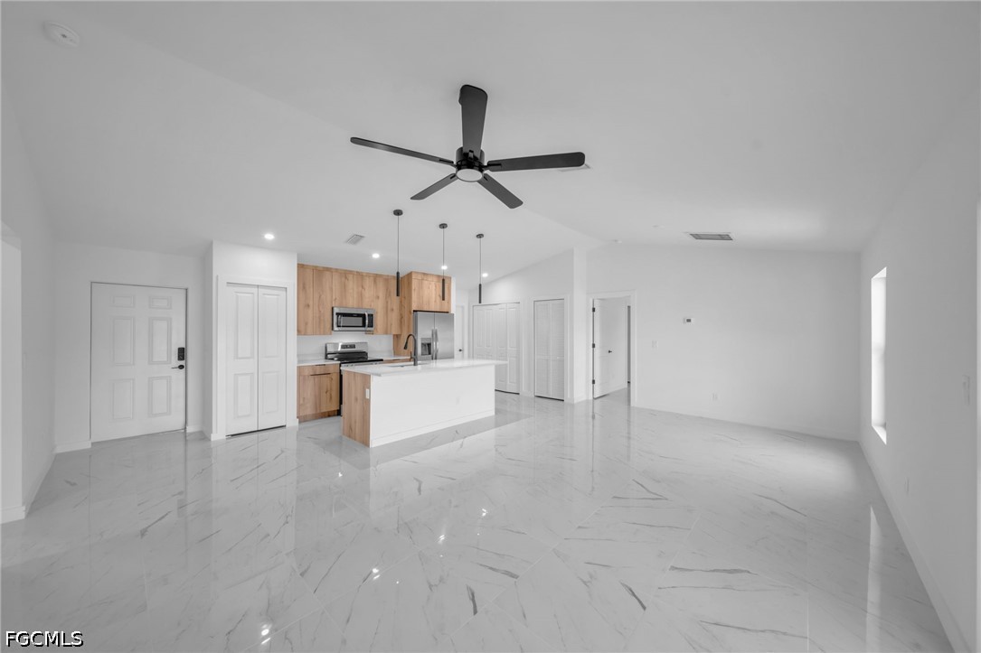 Welcome to this well-located 3-bedroom, 2-bath residence offering approximately 1,250 sq ft of comfortable living space in the rapidly growing Northeast section of Cape Coral. this home places you at the center of one of the city’s most exciting future destinations, with plans for waterfront dining, marina access, retail, and entertainment. Whether you’re a first-time homebuyer, growing family, or looking to downsize, this property offers the perfect blend of a quiet residential setting and long-term upside. With continued expansion and development in the area, this is a prime opportunity to secure a home in a location that is growing daily. Tile throughout the entire home. stainless steel appliances, modern kitchen. This home has a beutiful canal with great views